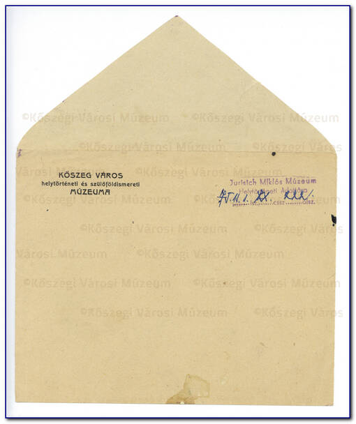 "Kőszeg város helytörténeti és szülőföldismereti múzeuma" cégjelzéssel ellátott boríték és levelezőlap |
