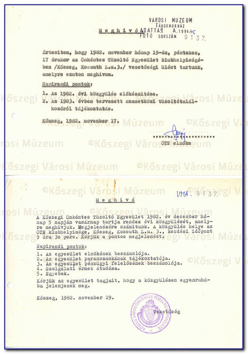 A Kőszegi Önkéntes Tűzoltó Egylet Közgyűlési Meghívó |